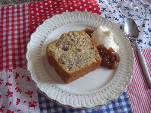 を添えたら、旦那が私がちょっとキッチンに行ってる間に勝手にイチジクのジャムも添えたもんだから、きゃ~!何でイチジク添えるのよ~!って私ちょっと鼻ふが気味で怒りましたよ。そしたらちょっとお試しだよん、って旦那。いやいやどうしてバナナケーキにイチジクジャムなのよ、って。でも、ま、自分がそうしたいならいっか、私のは添えてないし、思って、とっととそれぞれでいただいたのですが、そしたら旦那、生クリームとジャムもちょっとつけるとなかなか美味しいよん♪ってご満悦。ホントかいな、と思ったけど、この人たちチーズにもジャム添えるの大好きだしきっとそんな感覚なのねぇ、って。