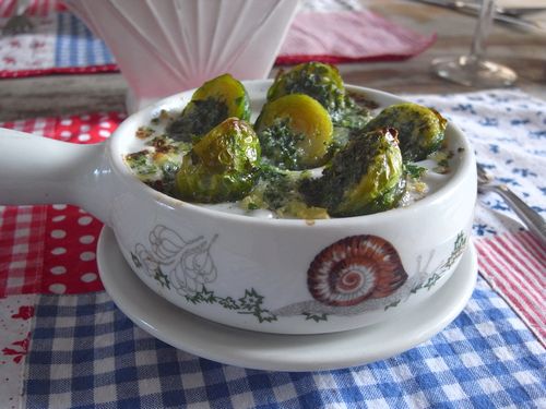 さて1品めです。芽キャベツのエスカルゴ風です。去年だったかな。このエスカルゴ専用器をエスカルゴ以外にも使いたくて、思いついたこの芽キャベツさん編。本物エスカルゴとはまったく違うものだけど、にんにくパセリバターはやっぱり美味しいので芽キャベツも美味しくなります。後々のため一応レシピとして出しておいた方がいいかなぁ。